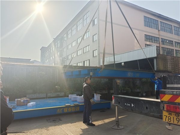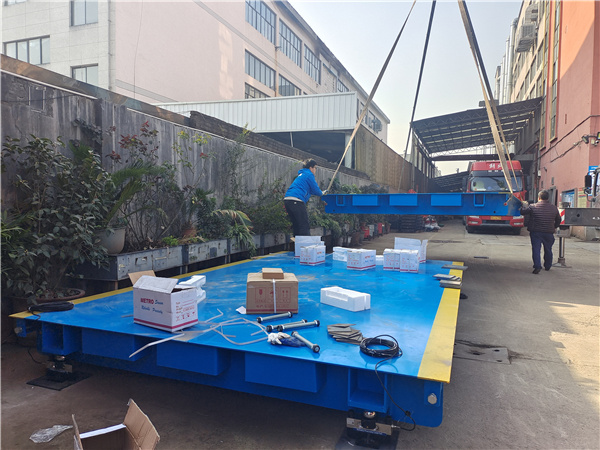 健身器材工廠為方便過進出貨物過磅,省去跟車去外面過磅的時間和功夫,選擇自己安裝一臺廠區內自備用磅。